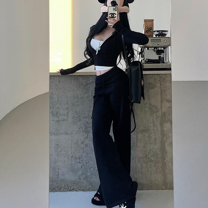 이지 웨어 세트 = 후드 지퍼 카디건 재킷 + 하이웨이스트 레그 캐주얼 팬츠 > 피트니스